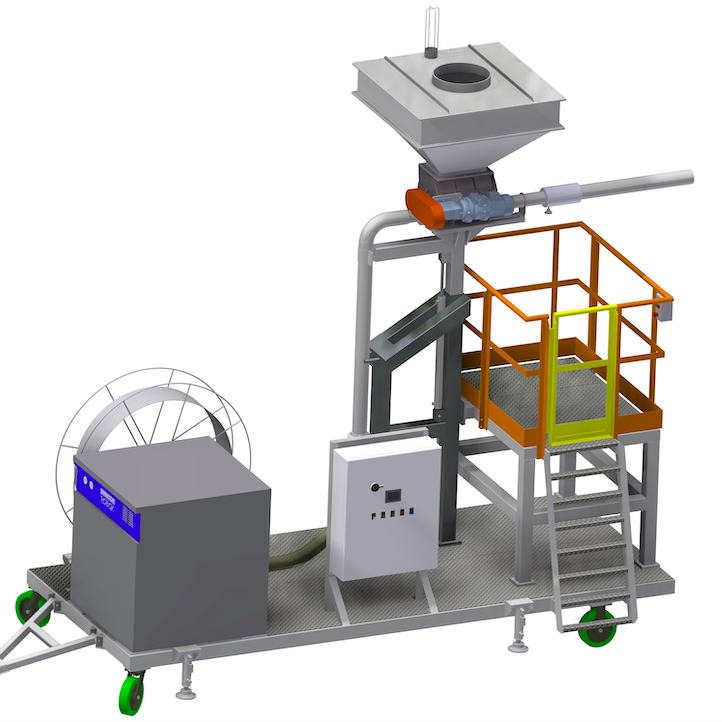 Due to the need to provide increasingly efficient mobile container filling systems, COMAV has developed two stations integrated with our rotary valves that can fill a 30’ container in an extremely short space of time.