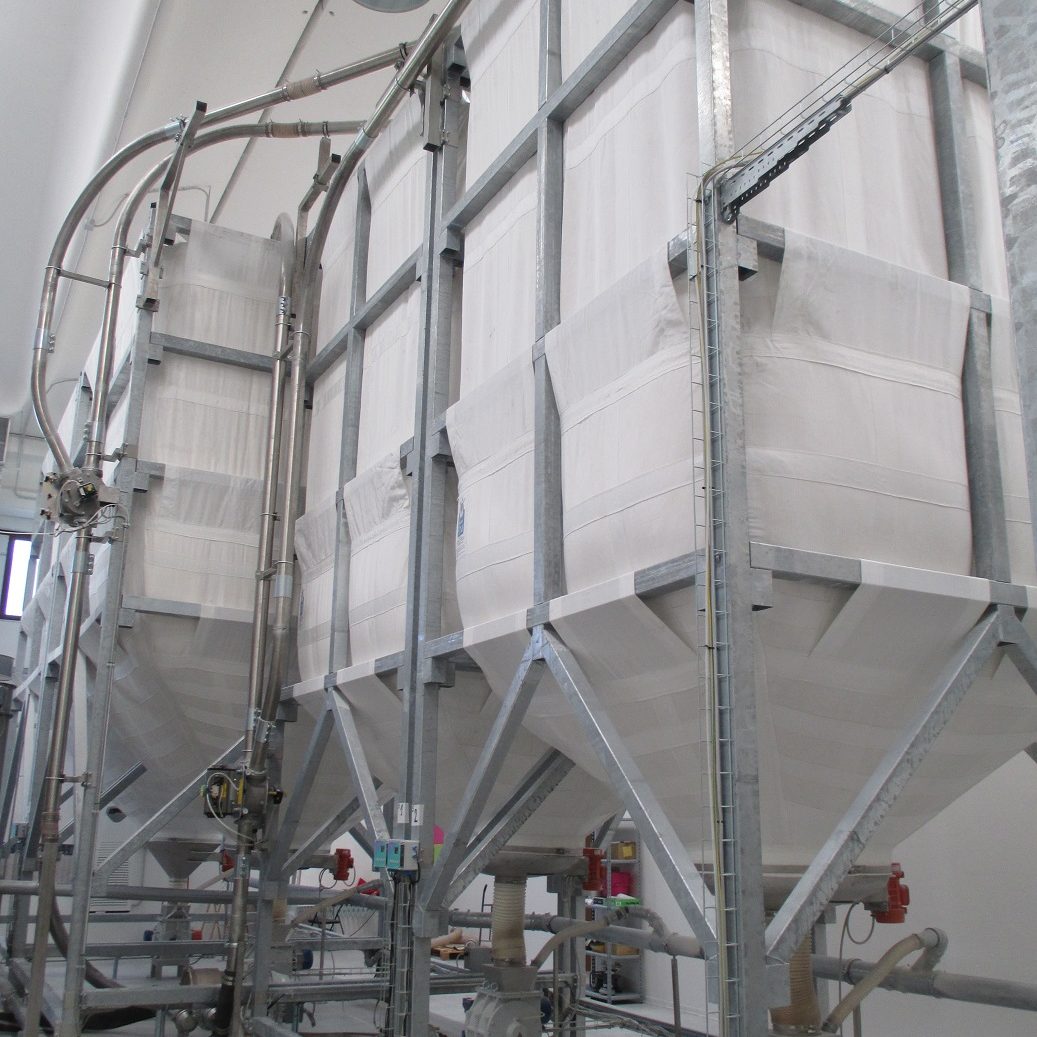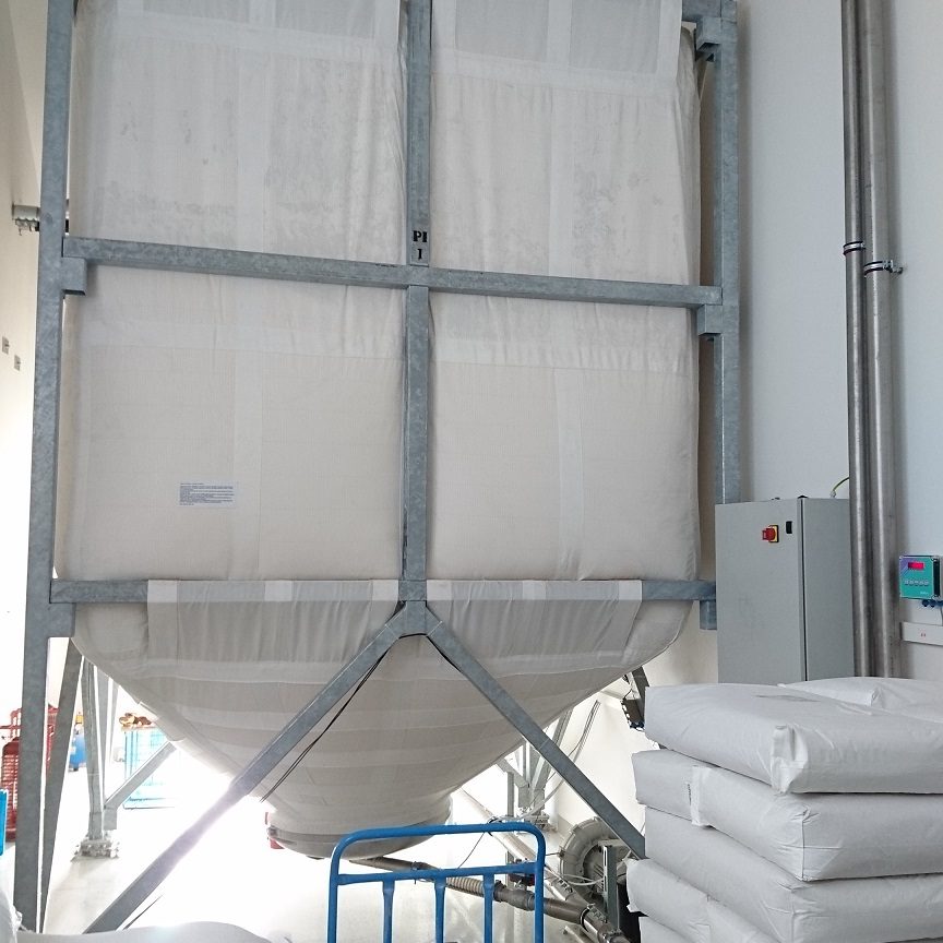 Sono realizzati da una robusta struttura modulare in acciaio galvanizzato che sostiene il contenitore in tessuto, il quale è dotato in un cielo filtro per filtrare l’aria in pressione durante la fase di riempimento.